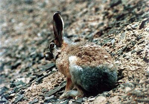 灰尾兔也叫高原兔,是青藏高原的特有种。成兔体重3千克,身长44厘米,耳长为体长的1/4。体毛浅灰棕,殿部青灰,尾毛浅白,尾基有灰斑。仅分布于阿尔金山和昆仑山海拔3000米以上的高寒草原、灌丛中,穴居,以棘豆、苔草等高山植物为食。