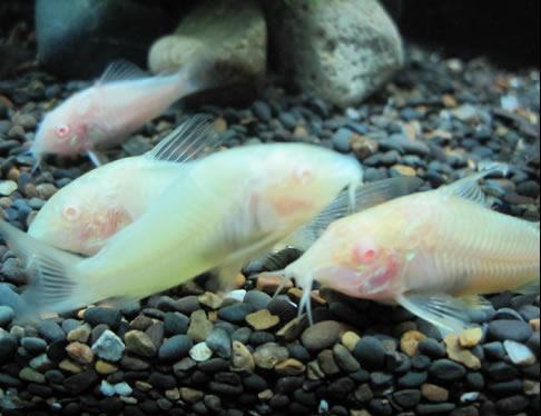 白鼠,原产于南美洲水域,现大多为人工培育种。白鼠是咖啡鼠的白子品种,体表为乳白色,红眼明晰可见,性情温和,可成群饲养。卵生,可与小型鱼混养,适合水草和沉木的水族箱,底层鱼。建议铺上细的暗色底砂以保护他们的触须。白鼠鱼和异型鱼类一样,体披骨板,胸鳍与背鳍的第一鳍条为硬棘,可借以保护自己,但不同于异型鱼的是老鼠鱼身躯两侧的骨板是由上下均等的硬鳞,致密且有规则的排列而成。此外,白鼠鱼还可以利用血管丰富的肠后端呼吸水面上的空气,以度过干旱或者水中溶氧不足等困厄的环境,而这也就是为什么我们可以时常看到老鼠鱼突然游到水面吞咽空气的原因。