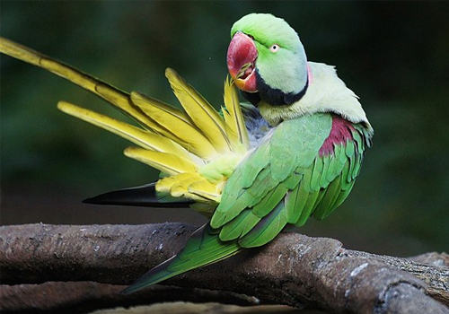 亚历山大鹦鹉体型大,它们的身长不会少于55cm,最长的个体可达62cm。因为体长的关系,它们的体重也不会太轻,通常情况下,亚历山大鹦鹉的体重在230g左右。远远望去,你会发现这种鸟儿的体色以绿色为主,它们的喙则是显眼的红色,不过它们的喙并不全是红色,仔细观察你就会发现它们的喙的尖端是黄色的。