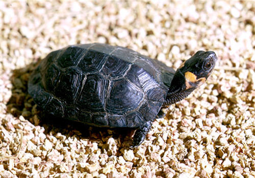 形态描述:背甲棕色,有棱,显得颇为粗糙,有如刀刻的一般。腹甲黄色,通常沿着盾片的边缘都有黑色的斑渍;不具铰链关节。