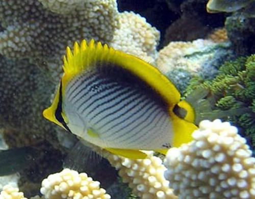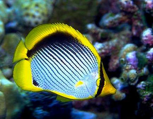 黑背蝴蝶鱼俗称太阳蝶、曙色蝶,是辐鳍鱼纲鲈形目蝴蝶鱼科的其中一种。主要分布在印度至太平洋的热带海域。黑背蝴蝶鱼的习性和一般蝴蝶鱼一样,只是外观更有特色。