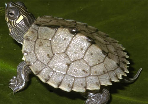 密西西比地图龟是地图龟属中最常见也是价格最便宜的一种,稚龟颜色与巴西红耳龟相似,所以通常会放在一起卖,价格也相差不大,深受人们的喜欢。