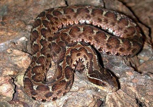 蝮蛇又有花斑蛇的俗名,是我国分布比较广的一种小型毒蛇。蝮蛇有较强的耐寒性,所以人工饲养难度并不大。蝮蛇喜欢栖息在平原、丘陵地带等靠近水源的地方。