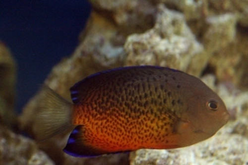 红闪电鱼又名红新娘,其最大的特点就是下半身的颜色像铁锈红色,但是身体上半部分为黑色。红闪电鱼的主要产地为日本、菲律宾、西太平洋。